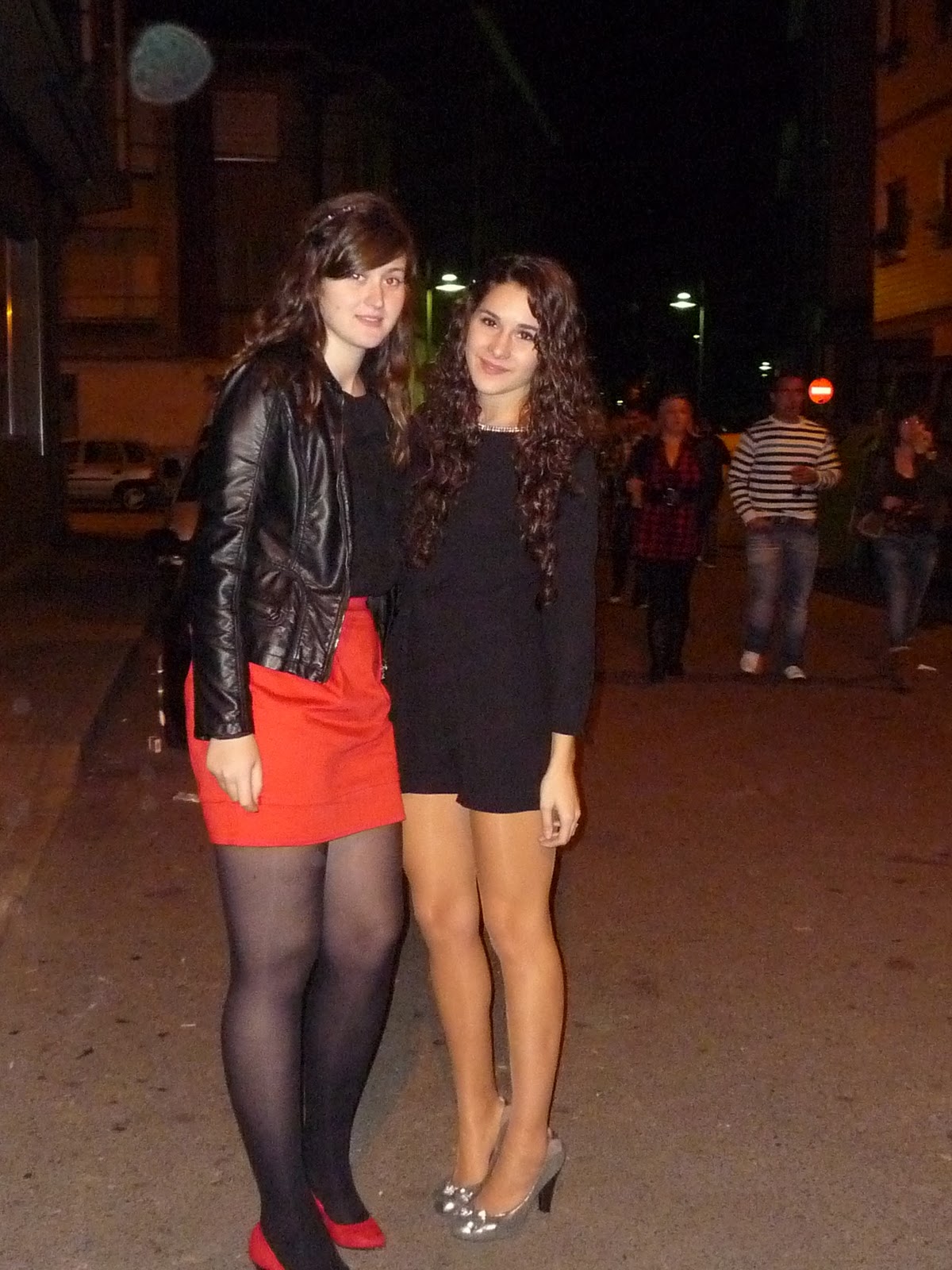 muy guapas las dos, el toque de la falda y los tacones rojos son preciosos, y el mono…maravilloso! seguro que os lo pasaríais genial! 1beso