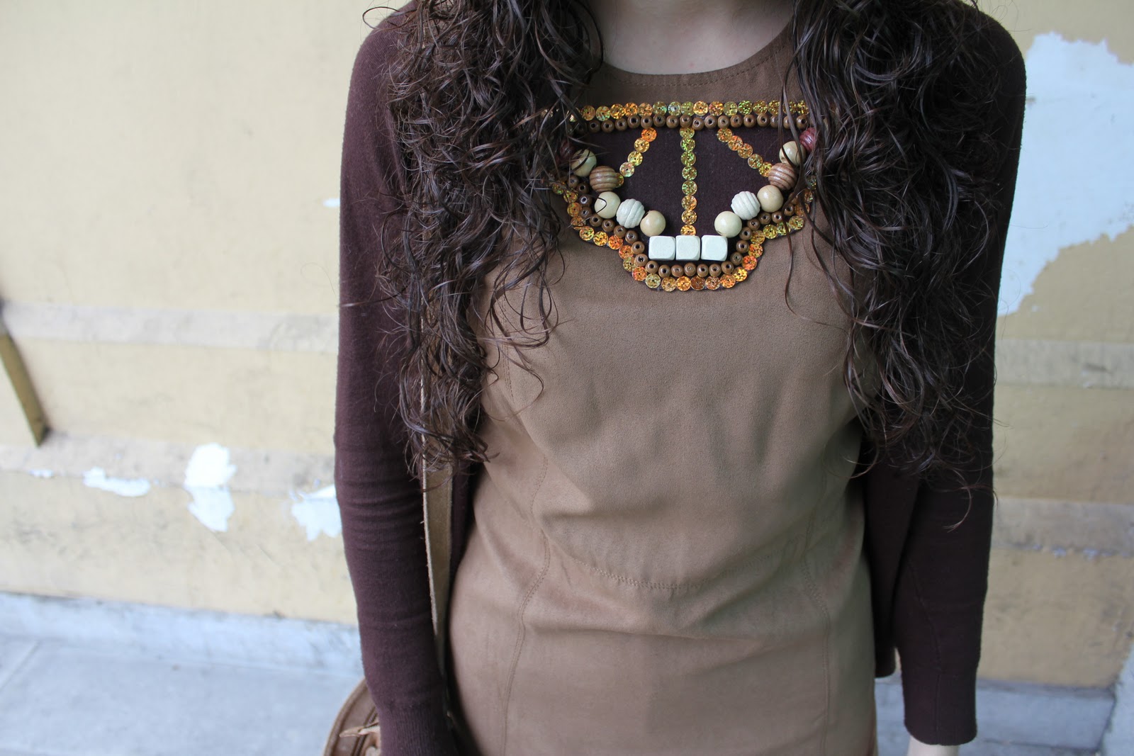 Muy bonito el collar que has hecho!! 🙂 Me gustan mucho los zapatos glitter en negro y el bolso marrón con flecos! 🙂 un besito!