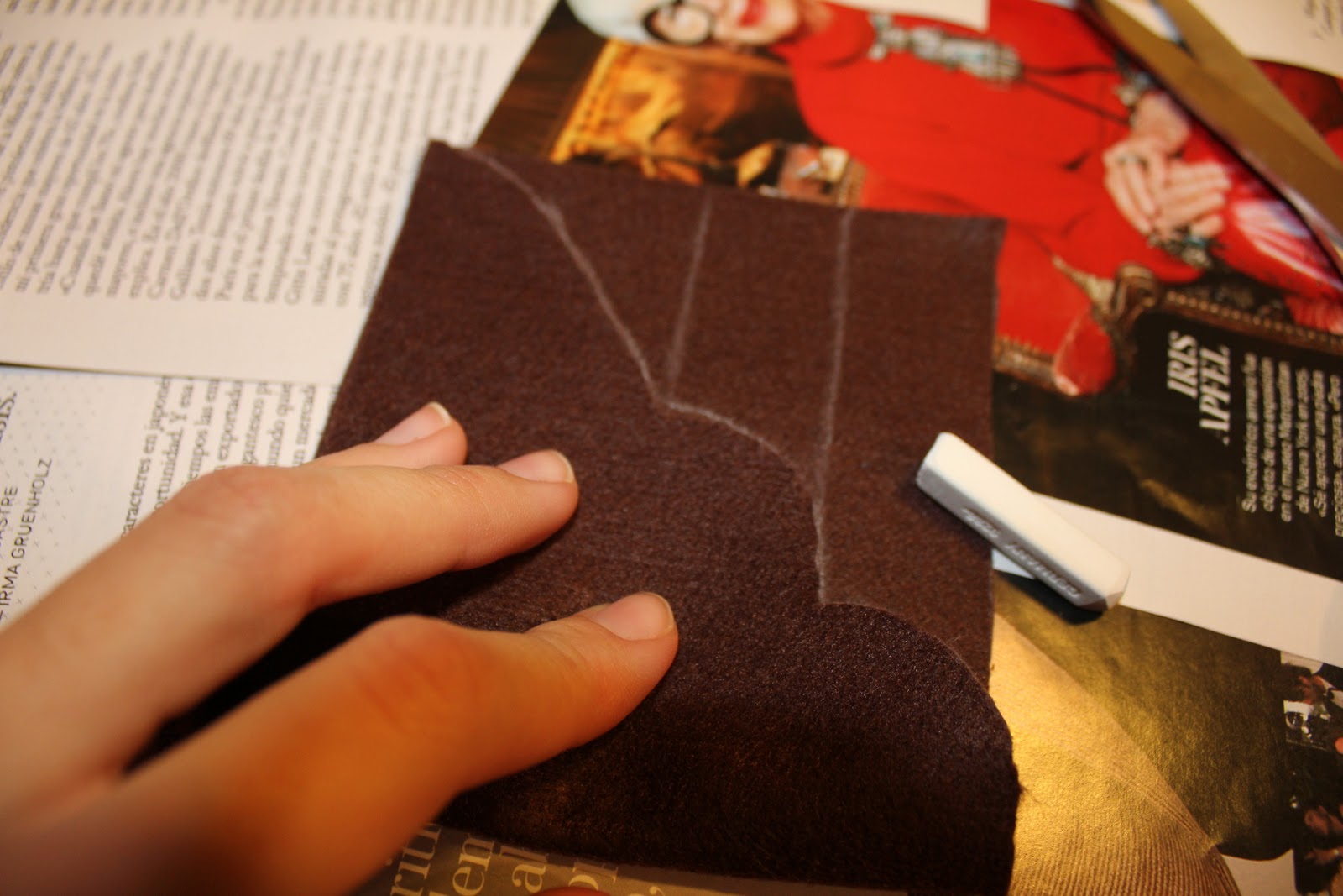 Y.. doblais y solo teneis que marcar con tiza en el otro lado para que os quede exactamente igual! Creo que es bastante práctico sobre todo si vais a usar formas redondas que son mas dificiles de repetir!