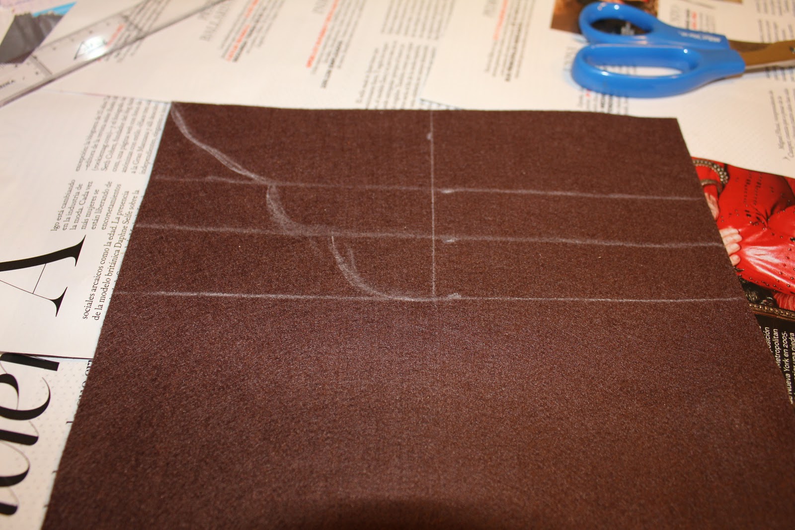 Bien lo primero es que os hagais con un trozo de fieltro del color que mas os guste y un tamaño suficiente como para el tamaño del collar que os querais hacer! Y os recomiendo que forreis la mesa en la que vayais a trabajar con una revista o periódico viejo!