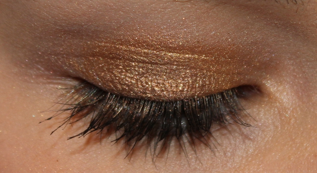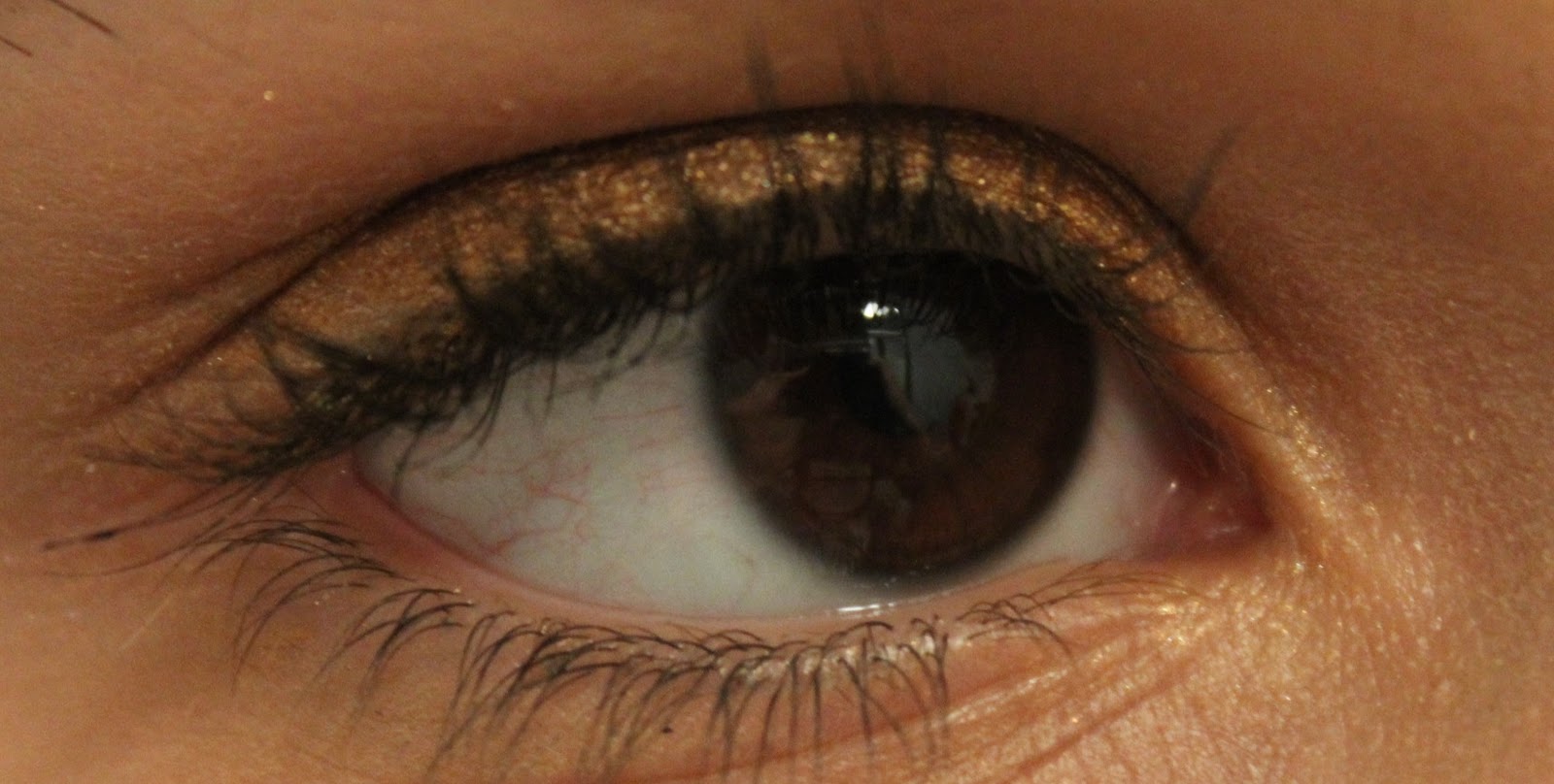 Este es muy sencillo, para quien no le guste marcar en exceso el ojo pero quiera brillar en tonos dorados que están muy de moda esta temporada. Si quereis le podeis añadir el eye-liner a este maquillaje y luego claro siempre un toque de rimmel. Si teneis las pestañas muy pequeñitas podeis recurrir a las postizas, pero ahí no os puedo dar ningún consejo porque en mi caso es mas bien al revés, tengo demasiado largas las pestañas.