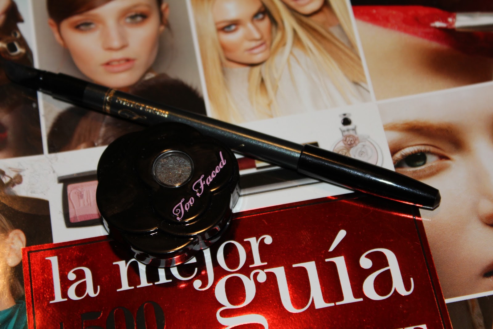 Esta sombra me encanta, es así tal cual, según le de la luz cambia de color, es de too faced y se llama petals to the metal, el lápiz de ojos también de too faced se llama perfect storm. Este es realmente simple, solo hay que aplicarse la sobra en el párpado (sin llegar arriba del todo, y si os equivocais rebajar con un poquito de sombra clara), y hacer la línea superior e inferior con el lápiz, si quereis darle un toque mas intenso podeis hacer como yo y marcar el rabillo del ojo.