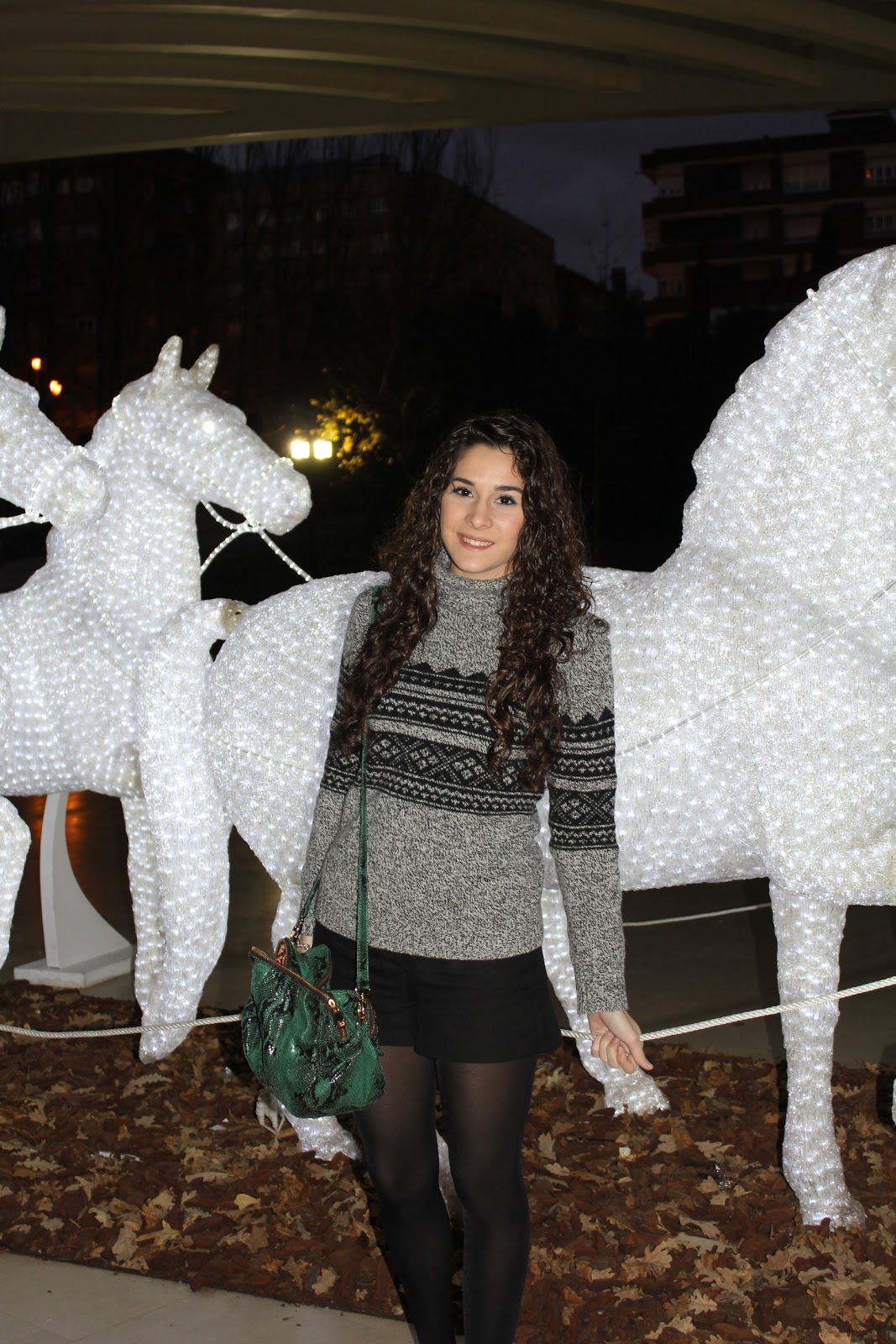 Hoy os traemos un look calentito para estos días del año, con un jersey de insipración invernal, vamos el típico que quedaría muy bien delante de una chimenea con un chocolatito caliente y un paisaje nevado viéndose por la ventana.