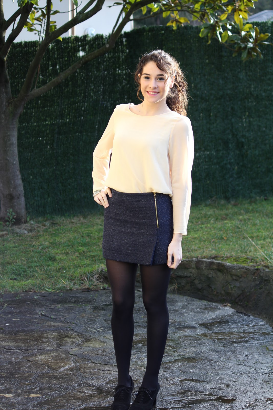 No se puede estar mas guapa y acertada en la combinación de las prendas! La blusa es una preciosidad y la mini te sienta como un guante!!
