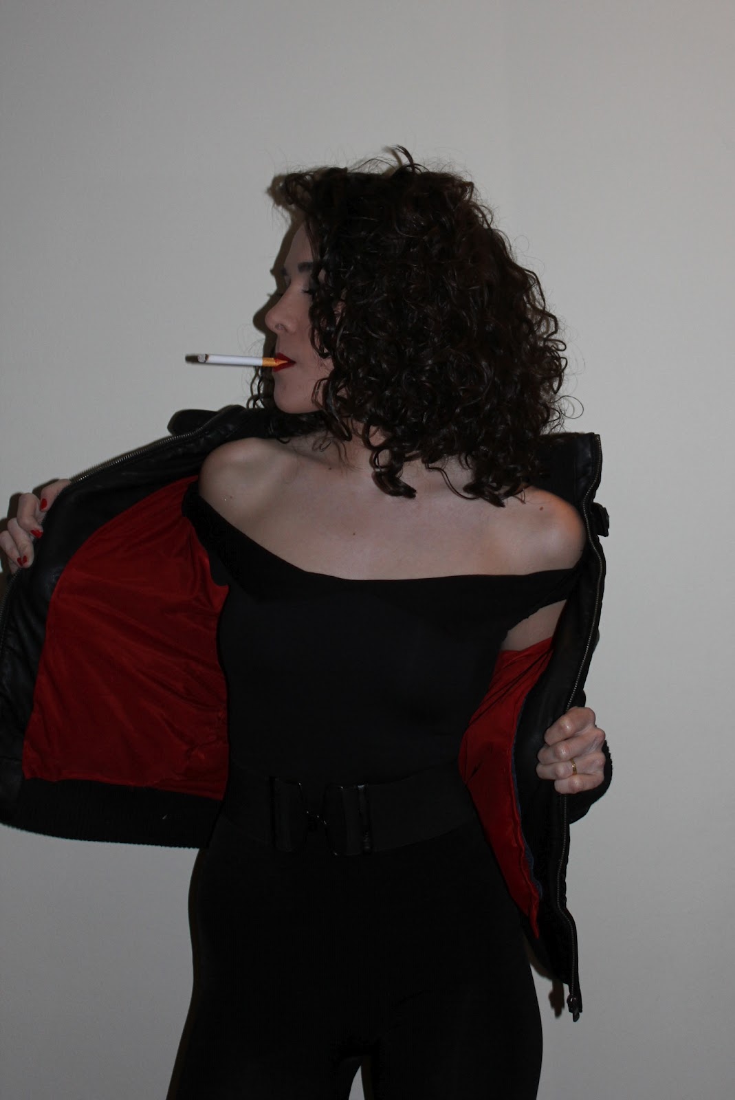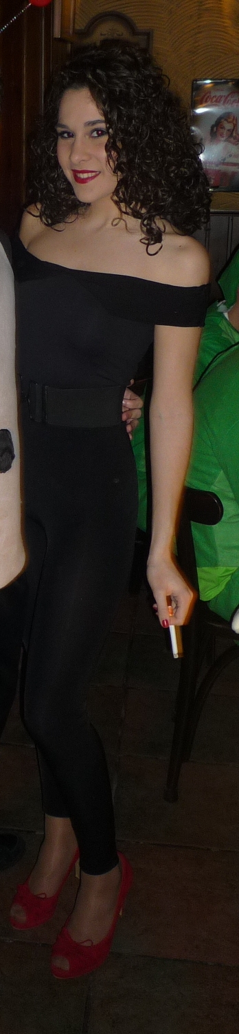 Hola! Muchas gracias! Pues a ver te explico, es muy sencillo, los leggins hasta la cintura que fue lo mas dificil de encontrar los conseguí en el Corte Inglés! Aunque si no los queréis llevar hasta la cintura os servirán cualquiera que podeis comprar en cualquier tienda yo creo. Luego la cazadora de cuero la tenía yo por casa y lo único que hice fue coserle un forro rojo porque la de Sandy es roja por dentro y la mía era azul! Los zapatos de tacón rojo me los compre en Fosco, pero vamos que cualquier zapato rojo os sirve!! Y la camiseta es la típica básica de zara de tirantes anchos que mi madre que es una artista le puso unos cuellos le bajó las mangas y me dejó una igualita que la de Sandy!! El cinturón creo que es de Mango si no recuerdo mal.