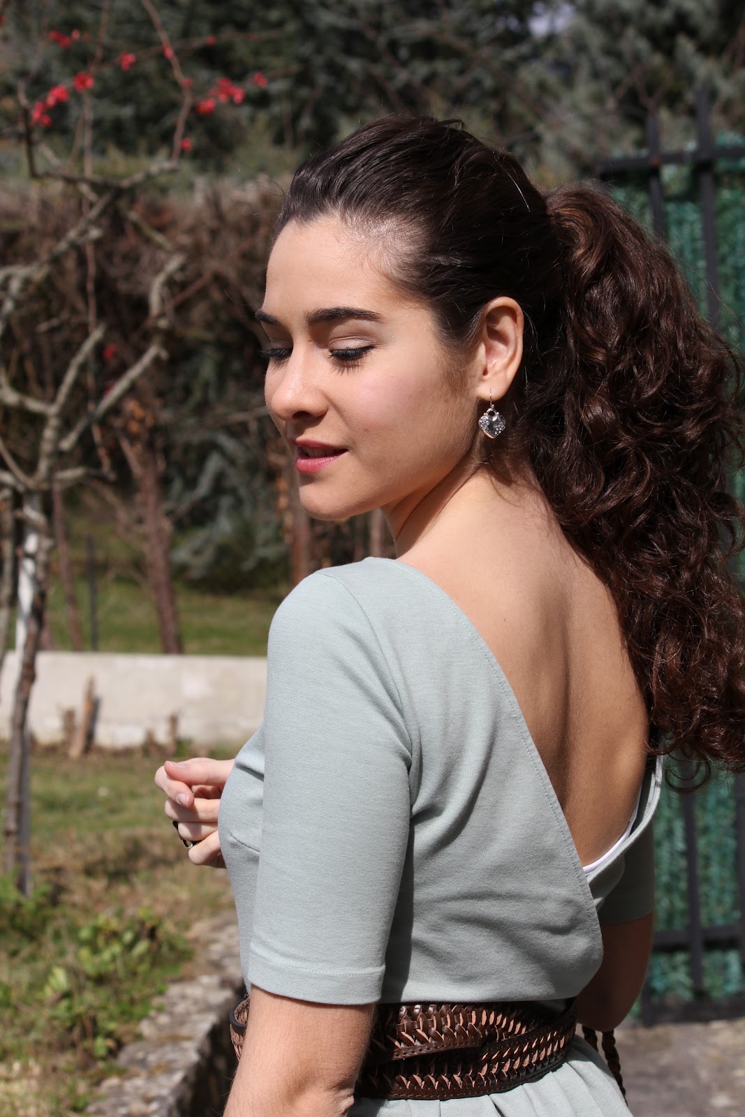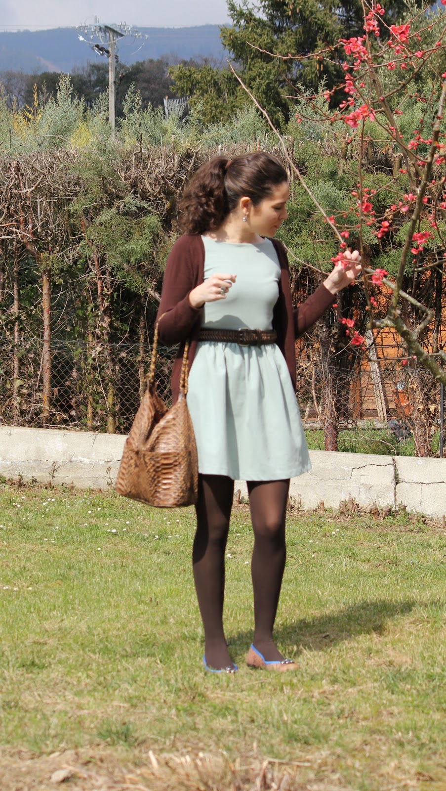 Como siempre me requeteencantas. Es un look super romántico. Ese color es precioso y además, combinado con marrón queda genial. ¡Los vestidos así con ese corte a la espalda me gustan mucho! estuve a punto, hace un tiempo, de cogerme uno morado de zara y al final nada. espero ir pronto y coger algo así. ¡por cierto! Estoy en necesidad absoluta de nuevas manoletinas, y me han encatado estas, de dónde son? 🙂 Un beso!!