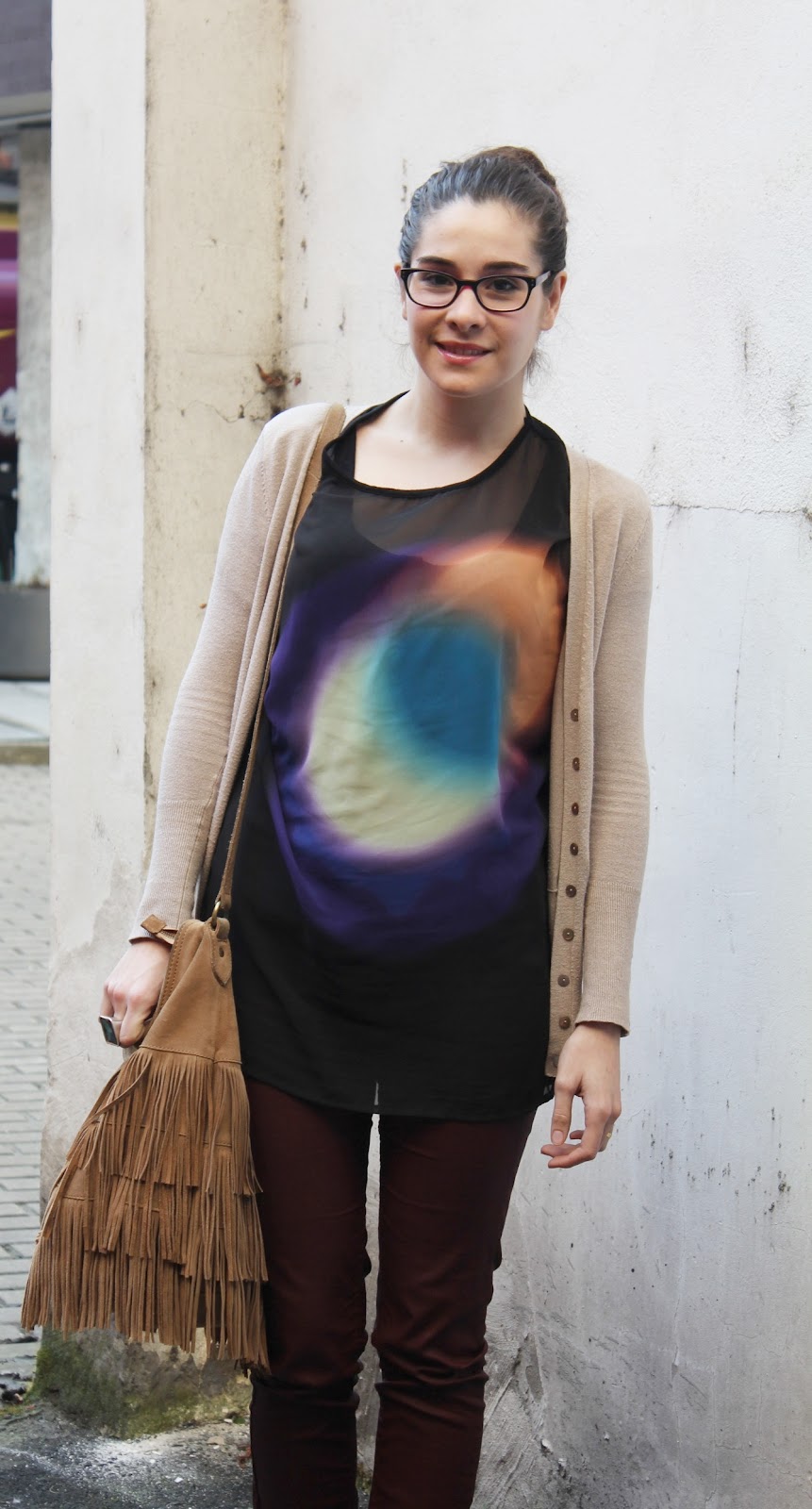 Pues el look de hoy es normalito, para ir a clase, pero con unos colores poco convencionales todos juntos, la camiseta y los pantalones (que ya los conocéis) son de rebajas, así que con poco se pueden hacer looks bastante interesantes…