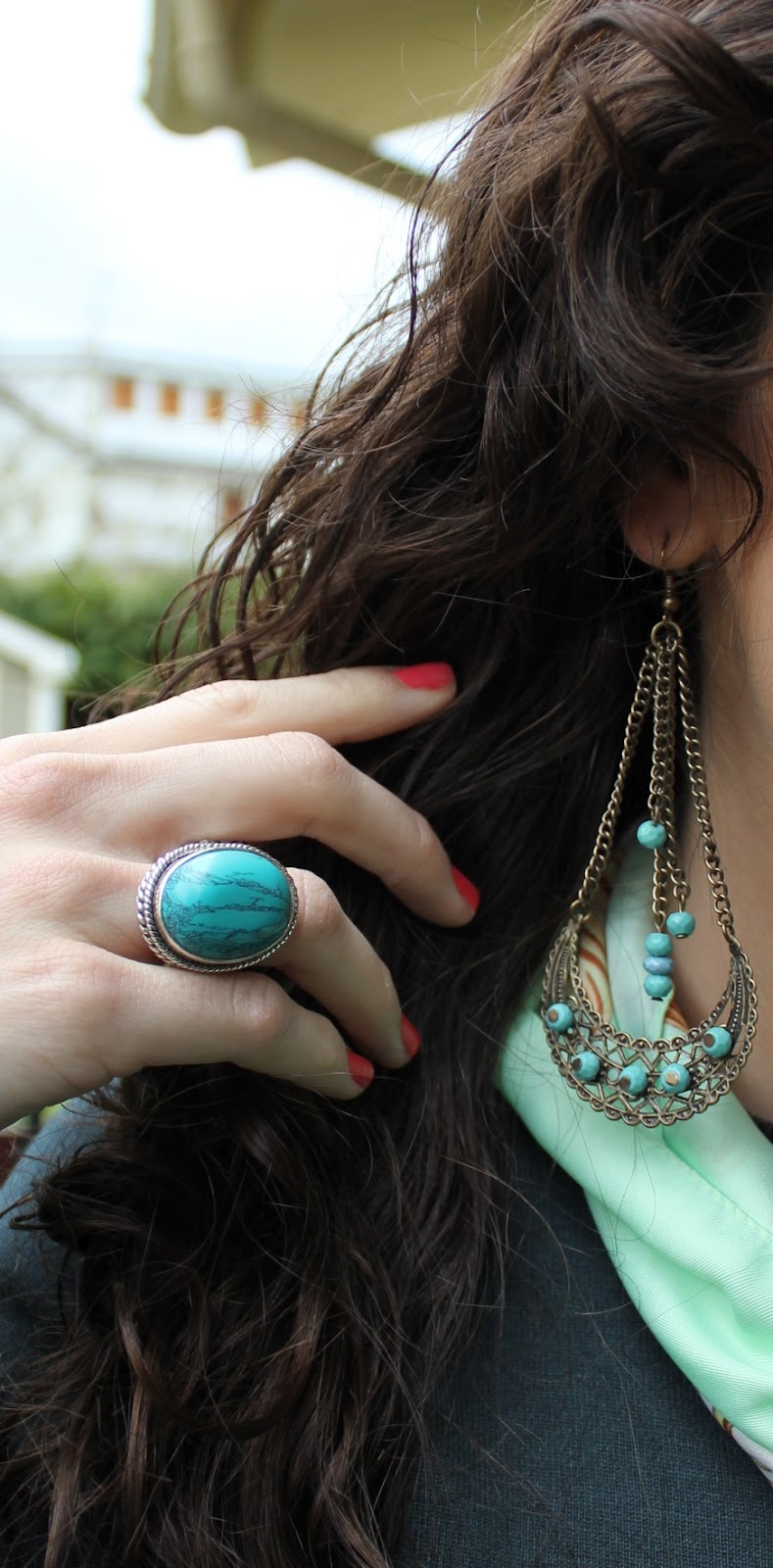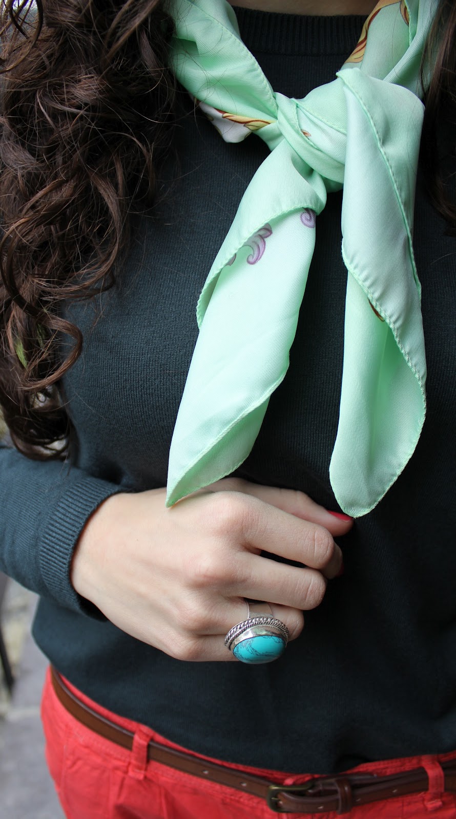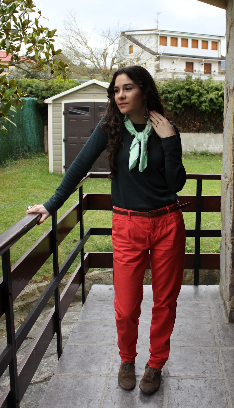 Me encanta el toque de color de esos pantalones combinado con el aguamarina!!!