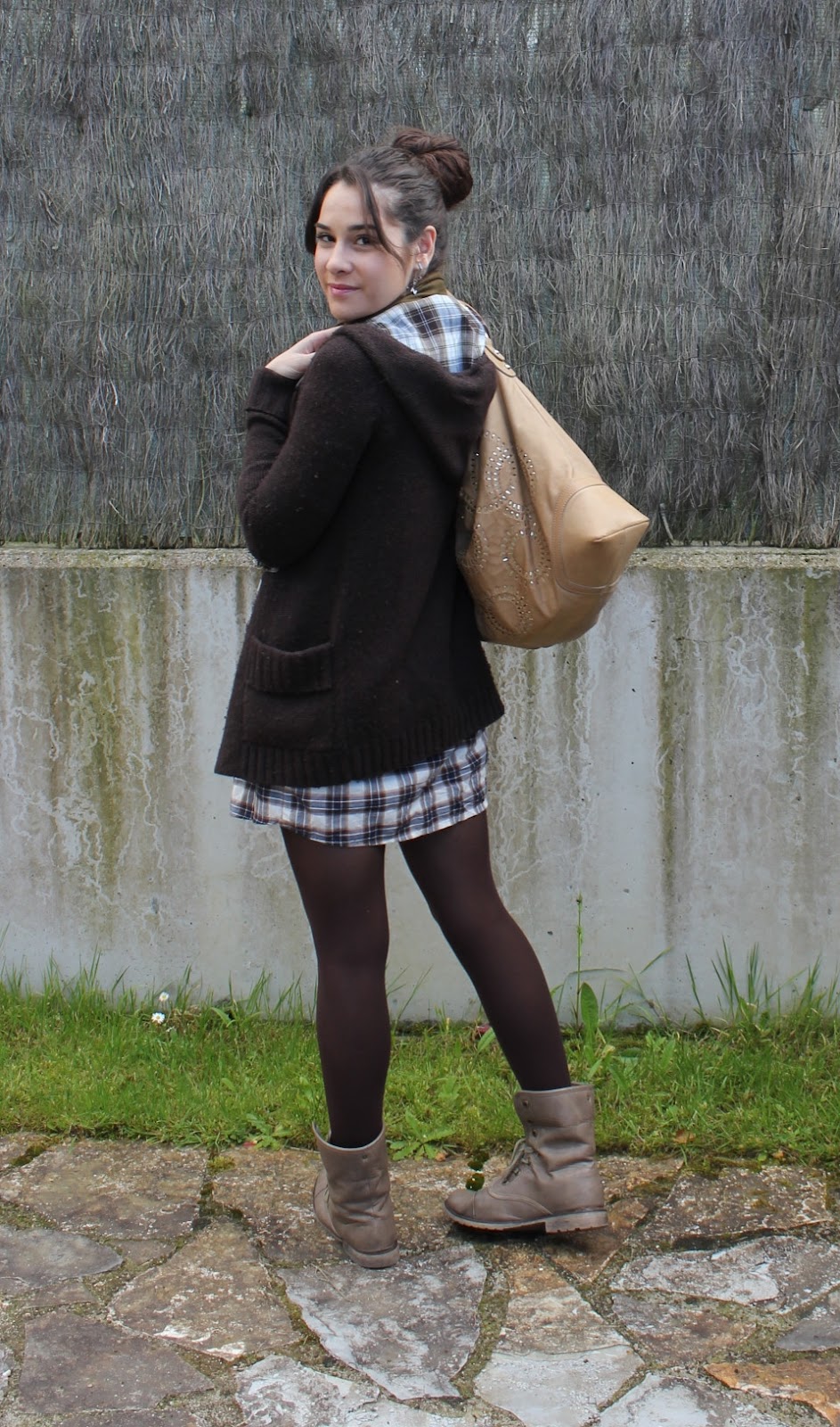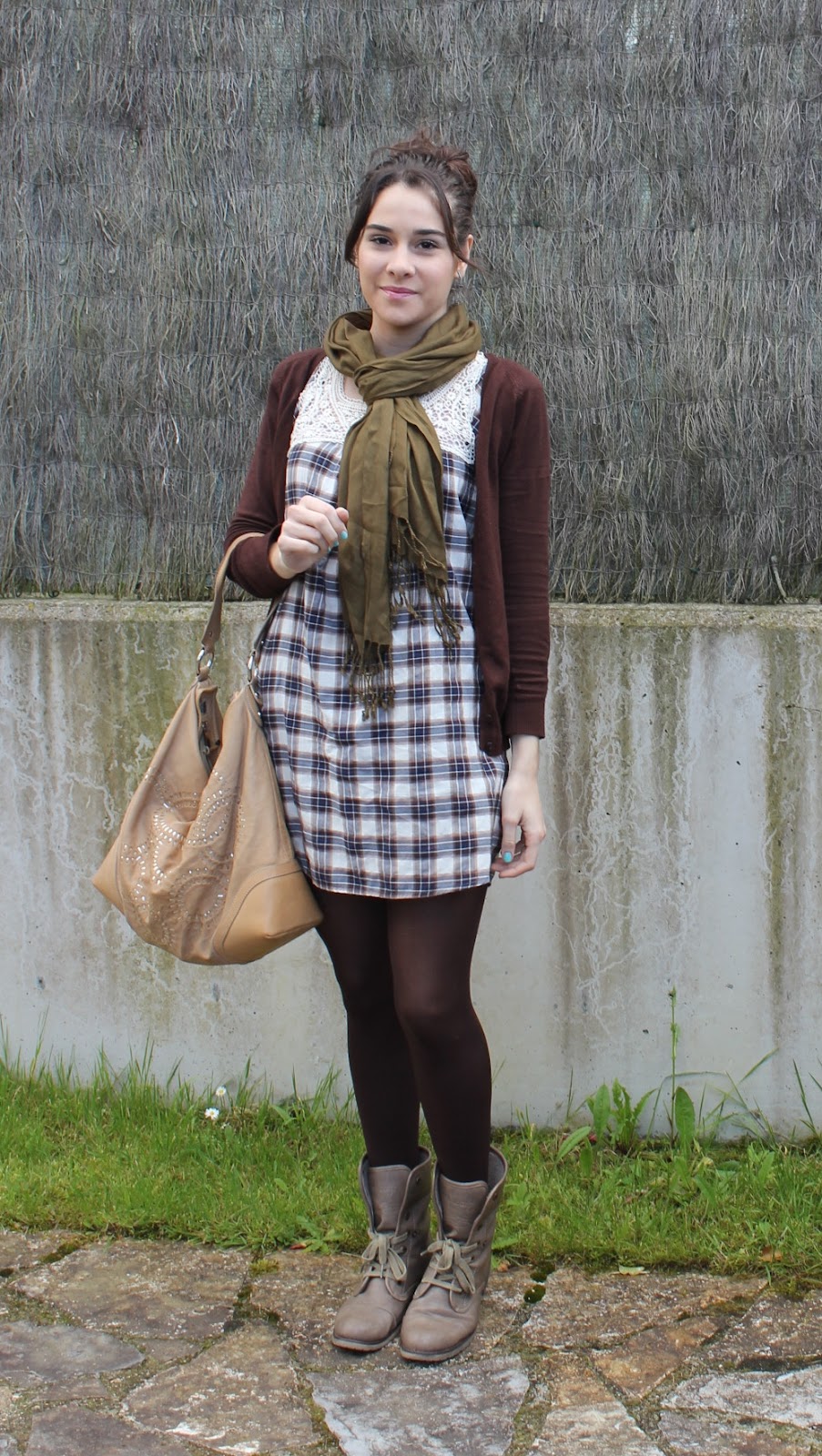 1. Hola!! 🙂 Hoy (en el outfit de las fotos xd) estas guapisima!! me encanta como combinas este vestido de cuadros azules con tonos marrones!!