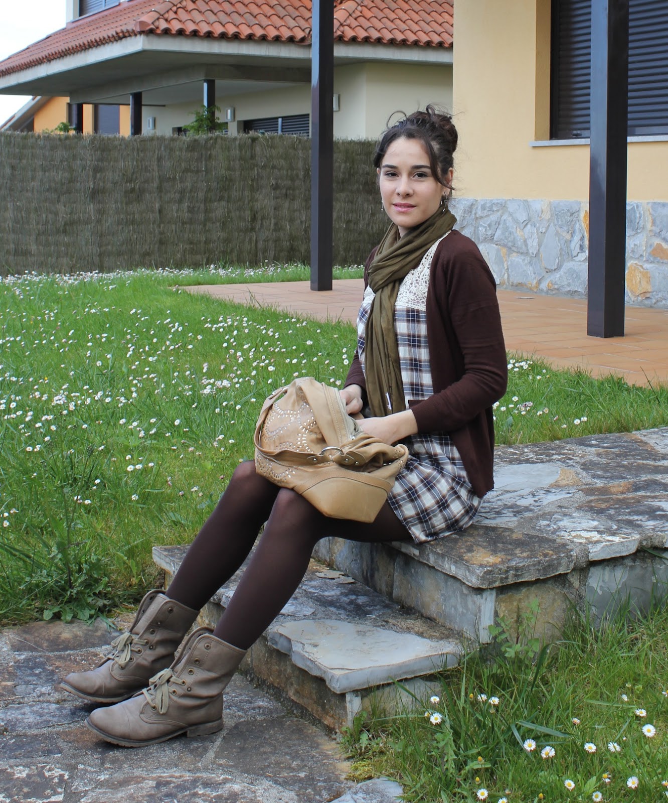 Hola!! 🙂 Hoy (en el outfit de las fotos xd) estas guapisima!! me encanta como combinas este vestido de cuadros azules con tonos marrones!!