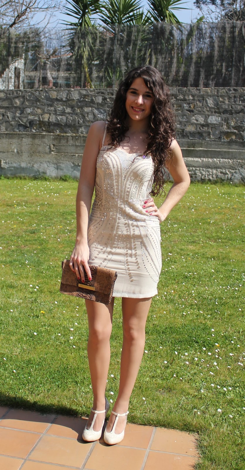 El vestido que vais a ver fue mi elección para la Nochevieja del 2010, solo que en vez de combinarlo con clutch marrón lo hice con uno negro y una chaqueta negra también, sin embargo por su color tan clarito me ha parecido que podía ser una buena opción también para esta temporada, ¿Qué os parece?