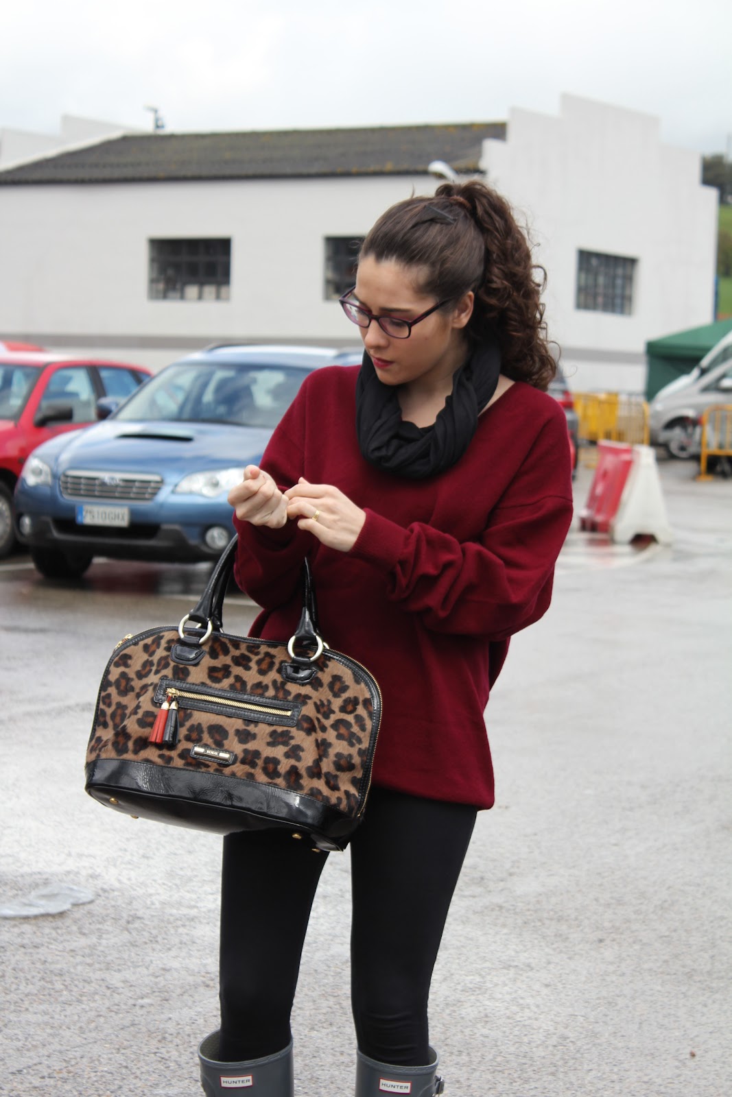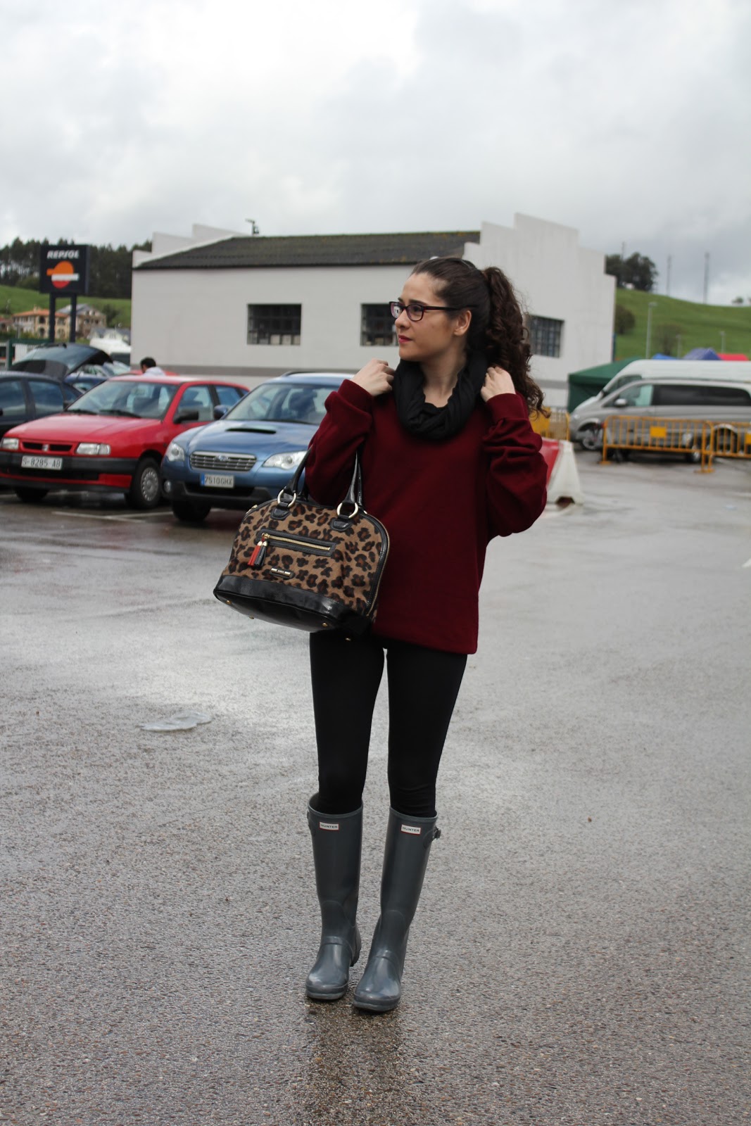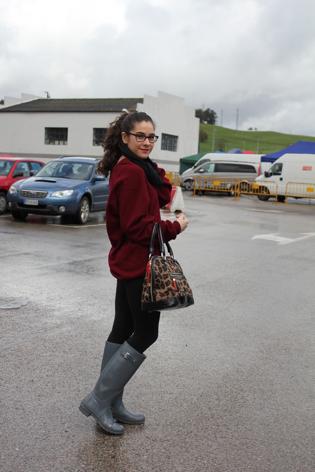 Mirala ella que mona con el jersey de Papá!! Me encanta esas tonalidades para el mal tiempo!! LAs Hunter perfectas!!