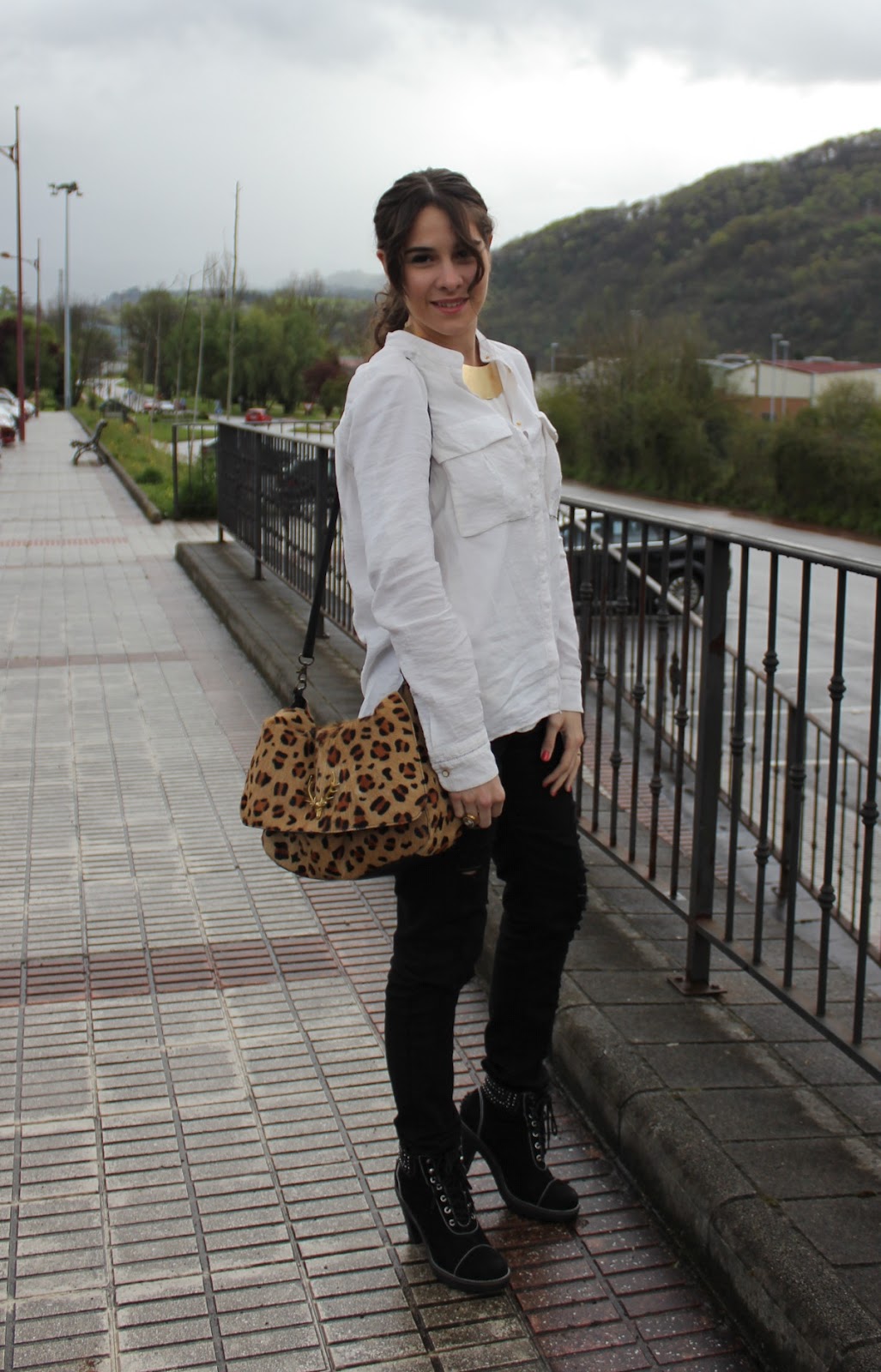 El look de hoy es bastante casual y sport, sigue lloviendo por aquí aunque con menos intensidad, pero aún no podemos ponernos primaverales. Hace tiempo que tengo esos pantalones, pero me los he puesto pocas veces, así que el otro día me decidí a sacarlos a pasear porque me parecía que combinaban bien con mi nuevo collar dorado, tenía ganas de uno así y seguro que ya los habéis visto en muchos mas blogs!