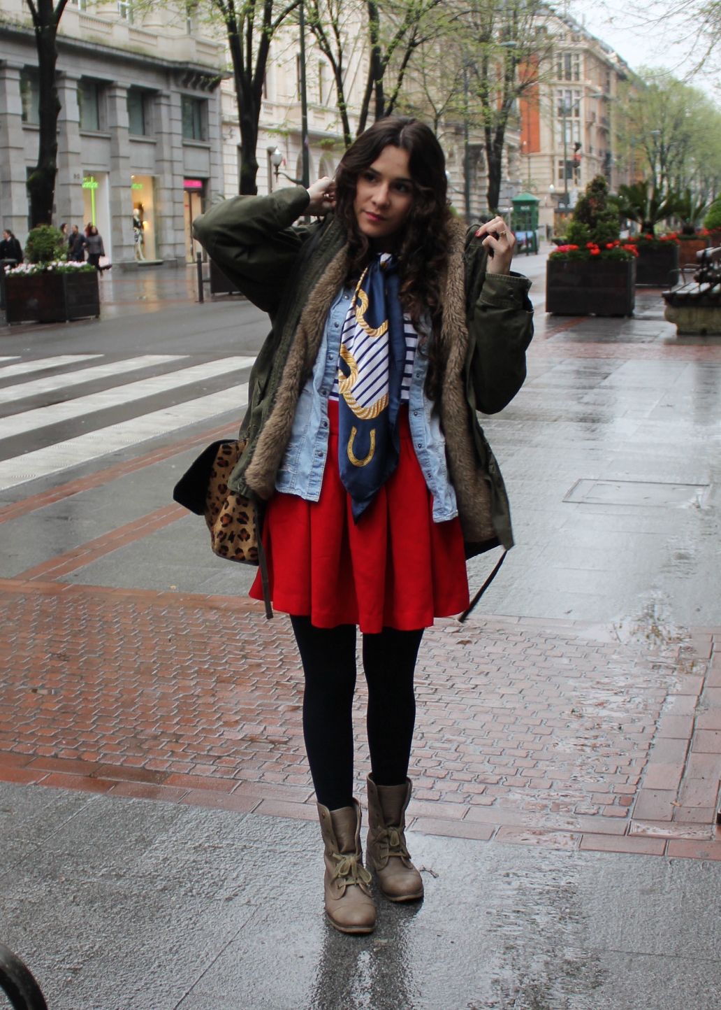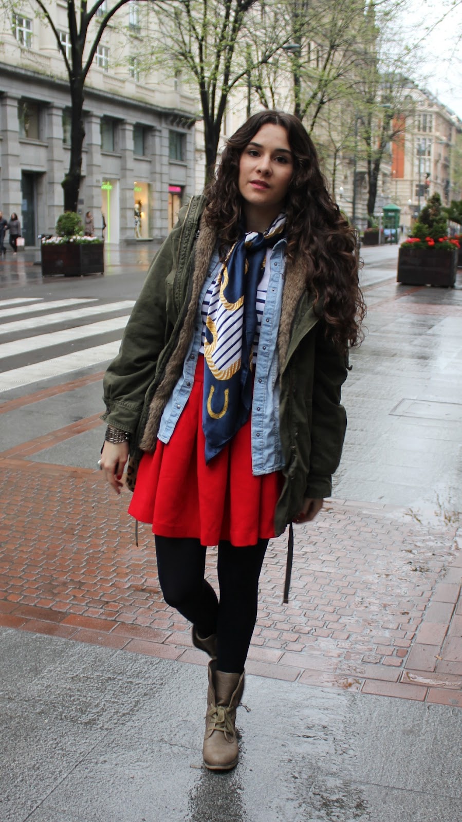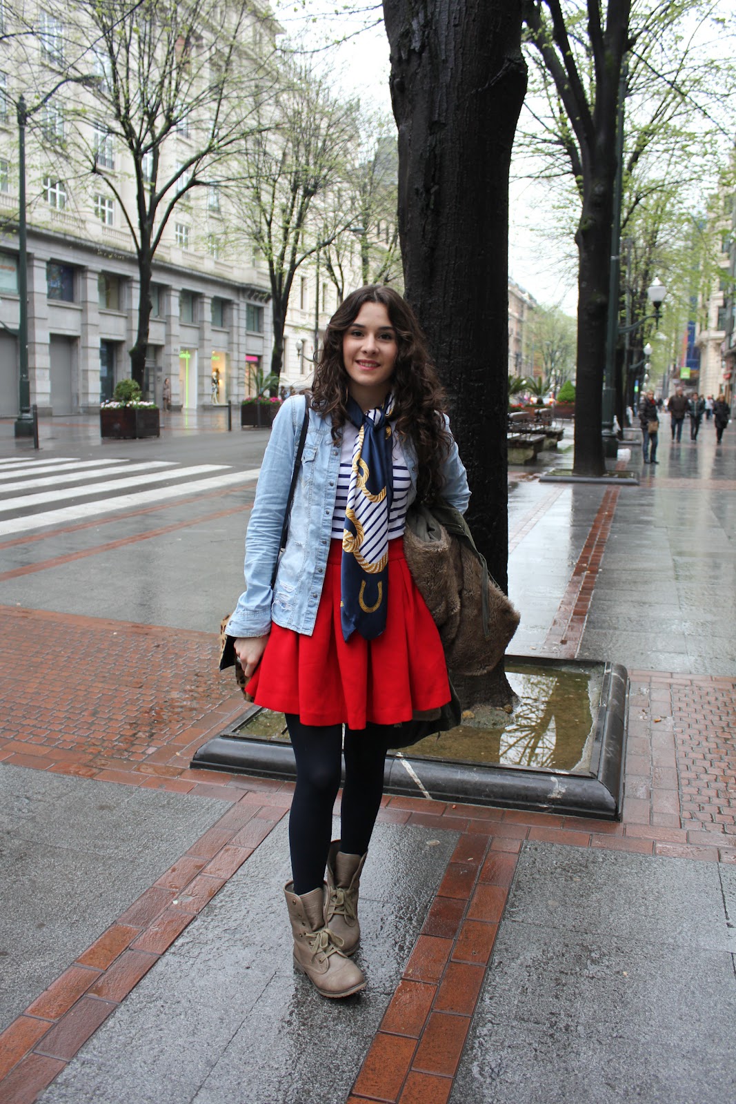 El look de hoy es muy de superposiciones, aunque hoy ha vuelto el sol por el norte, el fin de semana en Bilbao fue muy frio y mas lluvioso, por eso la ropa es mas de invierno que de verano.