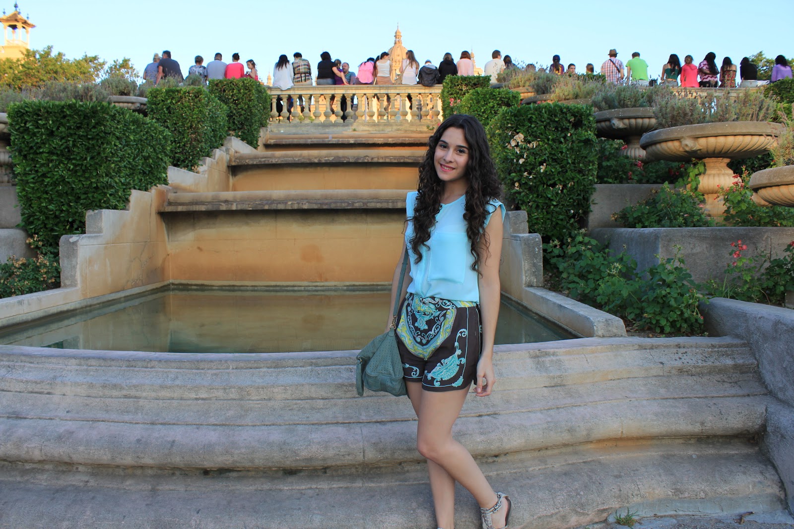 Hoy seguimos con las fotos de Barcelona, de nuevo en el Parque Güell, además del MNAC y Plaza España; como sabéis este año el estampado pañuelo está siendo un must del verano, así que os enseño mis shorts con este estampado, aunque puede combinarse con bastantes tonos, como ya estaba empezando a coger algo de color lo combiné con esta blusa azul pastel que realza bastante el moreno.