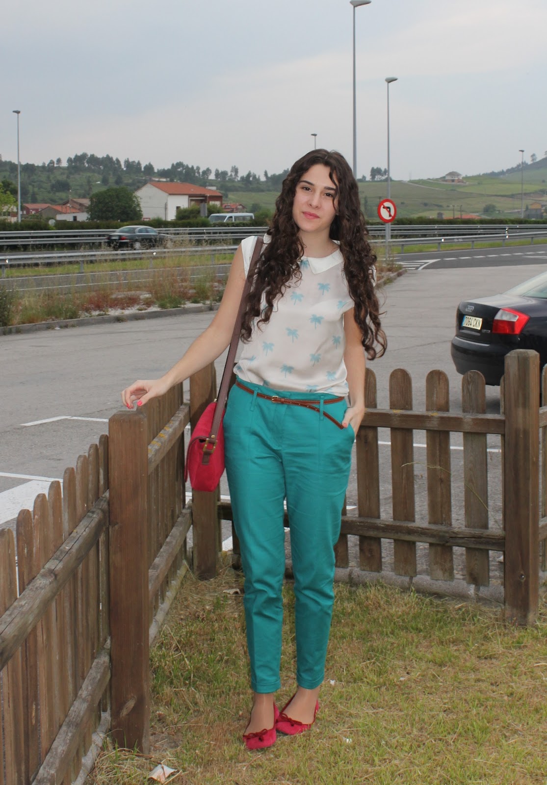 Bueno hoy os dejo con las fotos del día que llegamos a San Sebastián, que también fue el día de mi último exámen (de ahí mi cara de sueño). Decidí volver a combinar mi camiseta de palmeras, de nuevo con azul pero esta vez rompiéndolo un poco con tonos rojos.