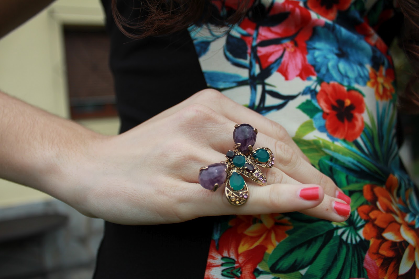 Hoy he decidido enseñaros este look tan colorido! El vestido me parece que es muy bonito, con unos colores muy vivos y veraniegos y además muy cómodo, pero el anillo tampoco se queda atras, me gustó desde que lo ví por primera vez, espero que os guste!