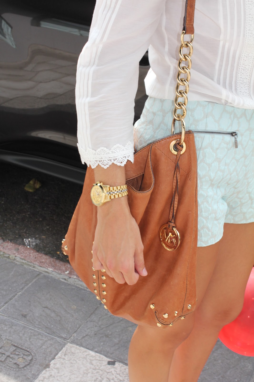 3. Your shorts are so pretty! Tienen un color azulito muy lindo. Me encantan todos los detalles de este look. La cartera esta preciosa. Que genio ese Michael Kors, verdad?