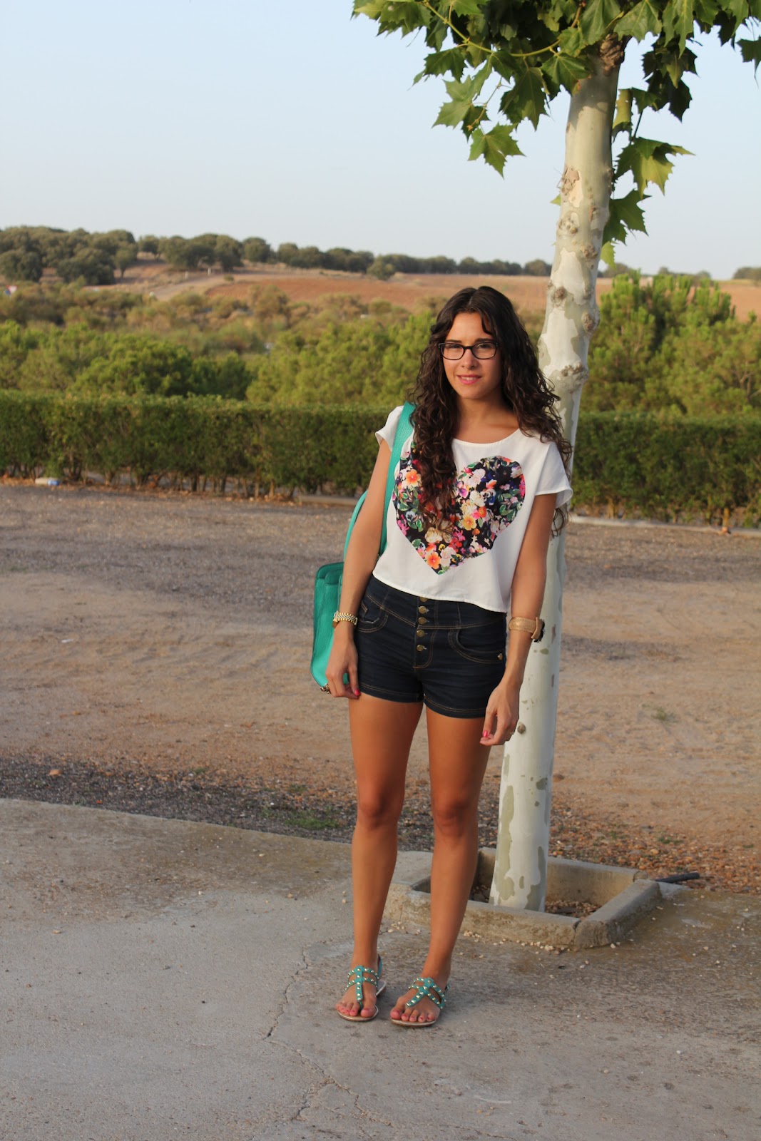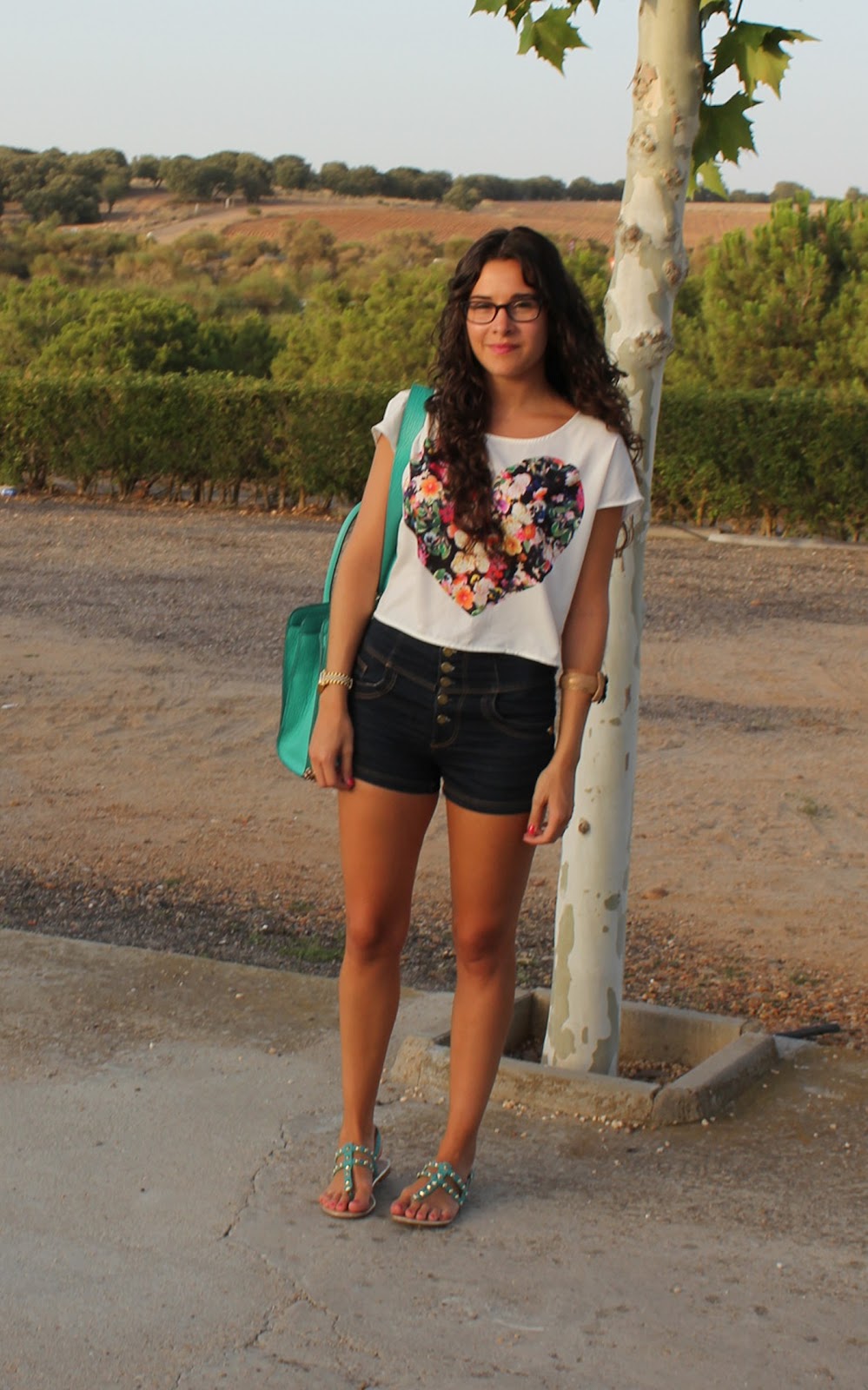 estas muy guapa,es un look muy comodo pero muy bonito a la vez.Me gusta mucho la camiseta,las sandalias y sobretodo el bolso!
