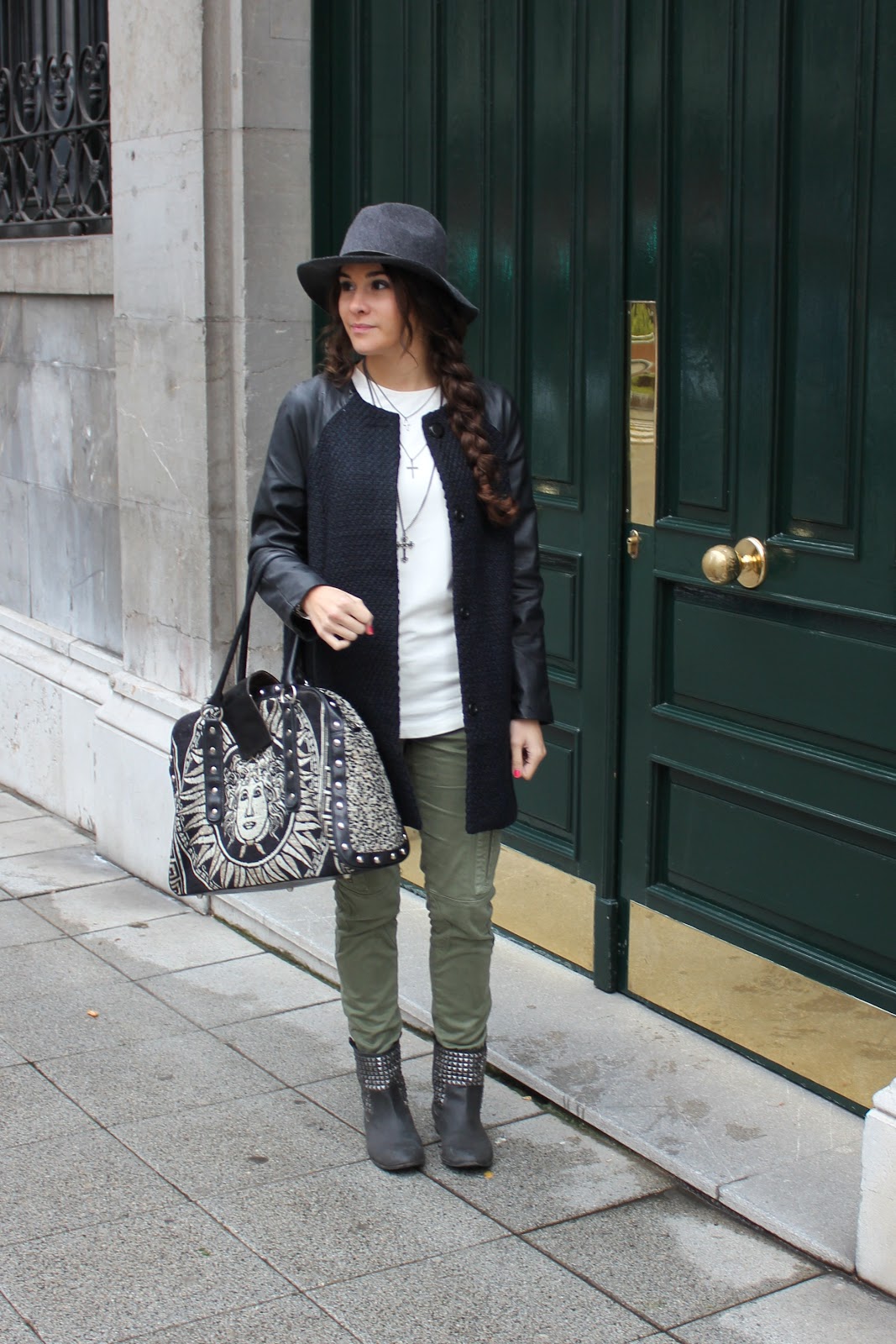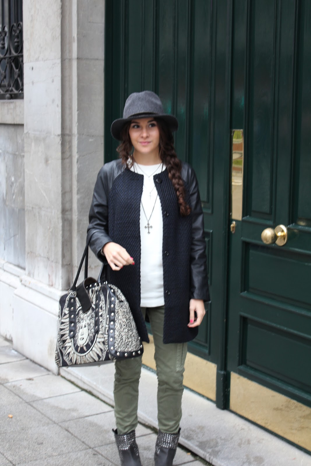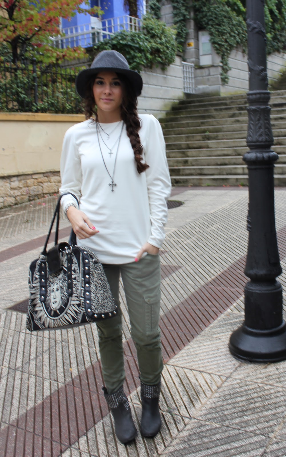 me encanta el verde militar, tengo unos pantalones iguales y le doy muchísimo uso. Genial la combinación con el sombrero y la trenza, que pelazo tienes.