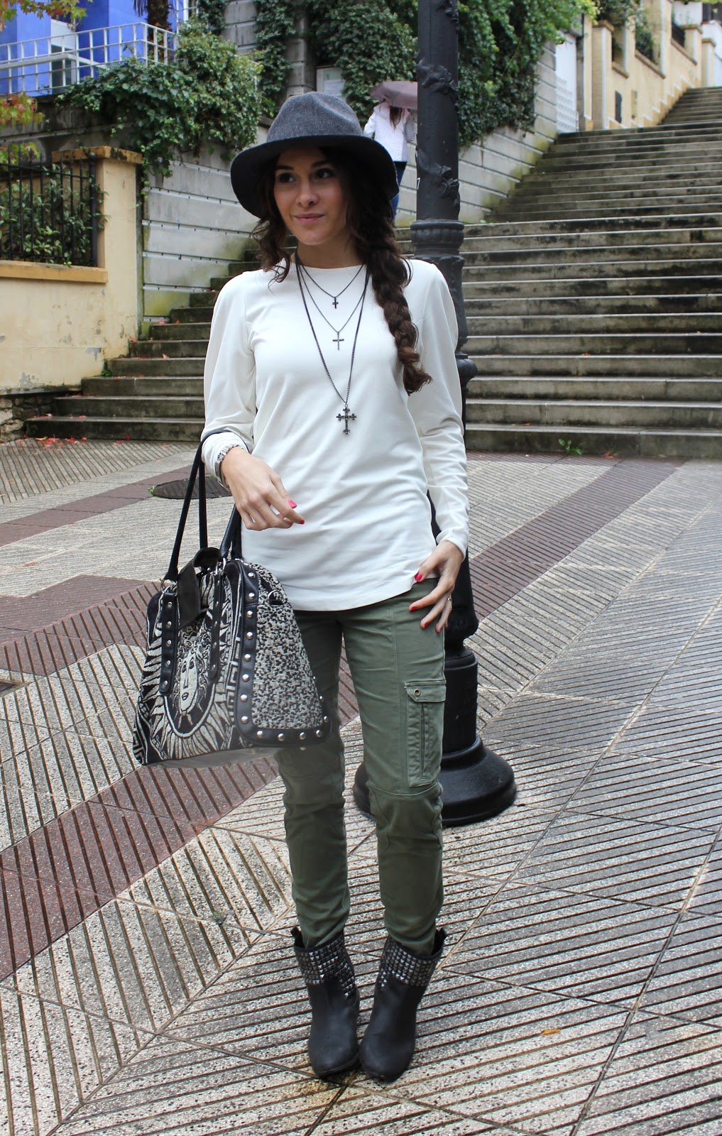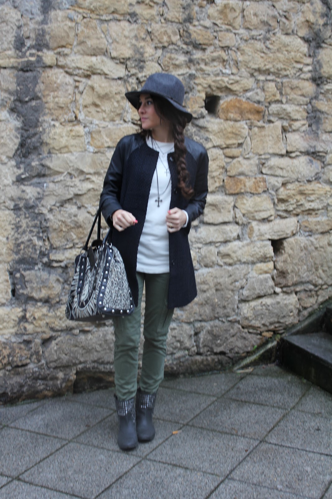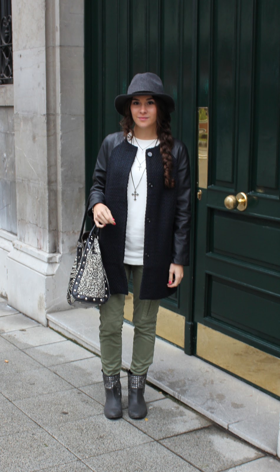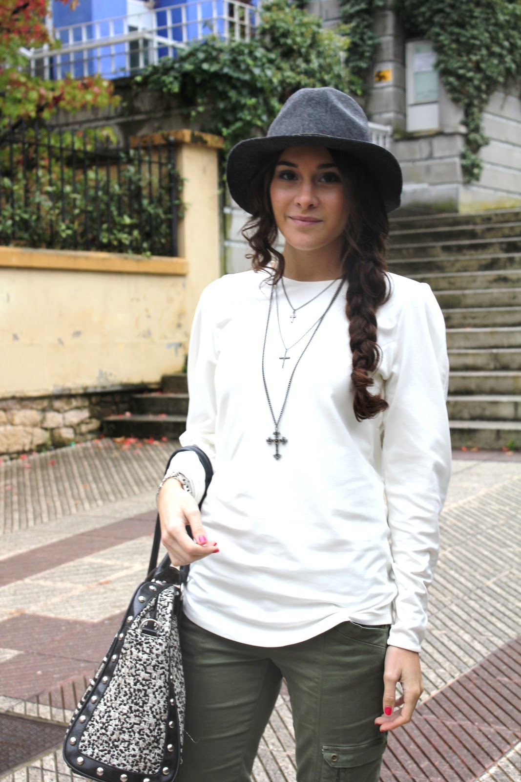 me encanta el verde militar, tengo unos pantalones iguales y le doy muchísimo uso. Genial la combinación con el sombrero y la trenza, que pelazo tienes.