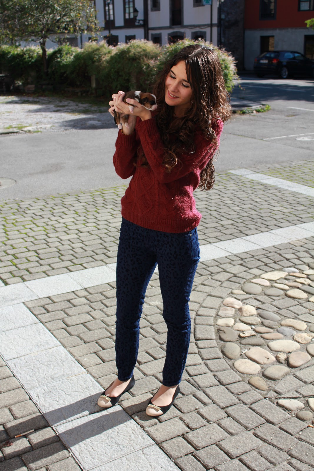 Me gusta mucho tu jerseys, burdeos, el color que parece ser el de la temporada jejeje, y los pantalones son originales, arriesgados, pero tu los has sabido combinar perfectamente, y esas bailarinas me han encantado!