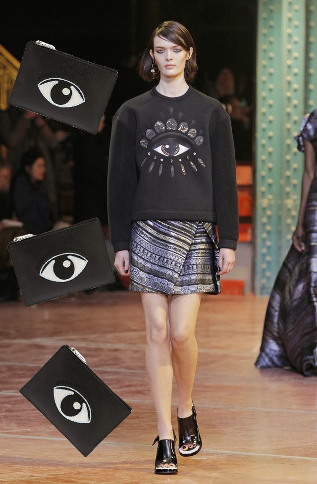 Hola chicas! Espero que los reyes se hayan portado genial, yo no tengo ninguna queja, y eso que aún no lo he visto todo. Hace un tiempo que se empezaron a llevar las joyas que son un ojo, y Kenzo haciéndose eco de esta tendencia, ha basado en ella parte de su colección (os adjunto una foto). Y yo os traigo este look, con esta sudadera de Persunmall que es clavadita a la de Kenzo, pero evidentemente mucho mas barata, a un precio a nuestro alcance. Yo la elegí en estos colores mas vistosos, porque me parecía mas llamativa y porque pensé desde un principio en combinarla con mis New Balance, pero también la tenéis negra y blanca, las podéis ver aquí. Decidí combinarla con jeans y este bowling de Purificación García. Espero que os guste el look y paséis un gran día de reyes!!