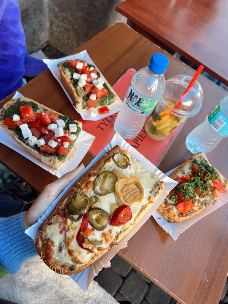 –Zapiekanka, my absolute favorite, a kind of panini with many toppings (it usually always has cheese and mushrooms). We ate it at Plac Nowy, in the Jewish Quarter; the price is about three euros for the portion in the photos.