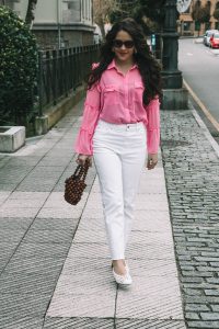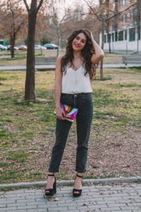 Lunes con un look muy «fresita». La combinación de blanco con rosa siempre me ha pareceido muy girly. En esta ocasión he querido combinar una blusa de volantes suelta y algo transparente con mom jeans blancos. Para seguir con el aire retro he optado por accesorios muy vintage, bolso de bolas de madera y zapatos… Leer más »GIRLY PINK & WHITE