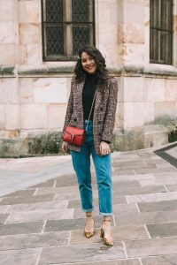 La mezcla de este tono azul con el color caramelo de la falda pantalón me encanta! Creo que este es un look perfecto para los últimos días de invierno, además es apto para casi cualquier situación! Como puntos de tendencia, lo he combinado con un maxi abrigo de corte masculino, boina, botines de animal print… Leer más »FRENCH TWIST